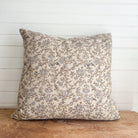 Entirely crafted by hand, this block print pillow features petite blue flowers and brown vine on neutral background. Made from 100% cotton and the cover is machine washable on gentle. Great for your couch or even an accent on your bed.