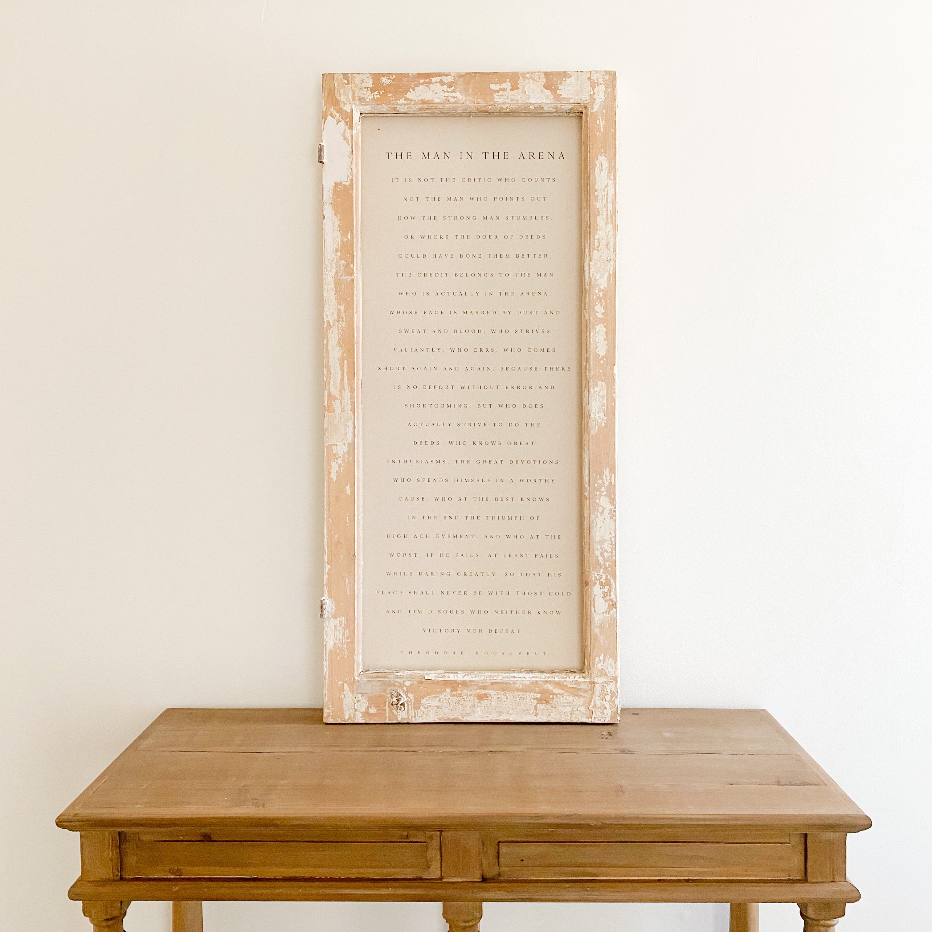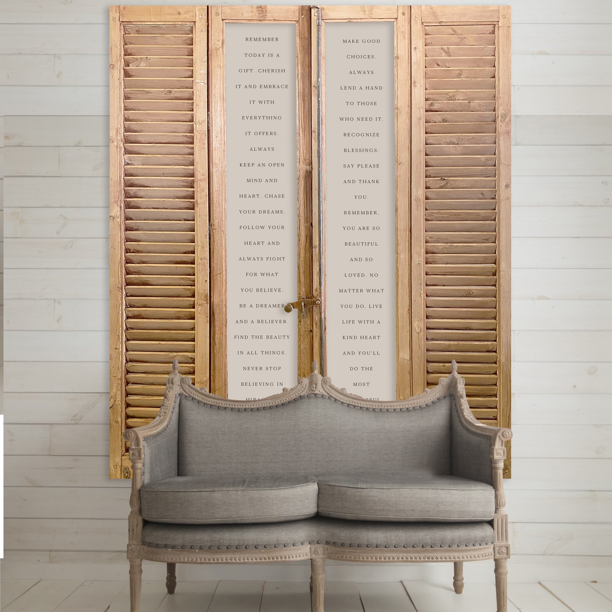 Keep inspiration close at hand with our one of a kind wall signs. Printed on natural linen canvas our signs are framed in vintage European window panels.